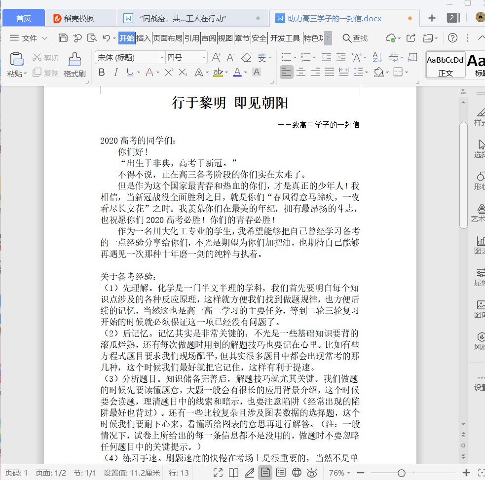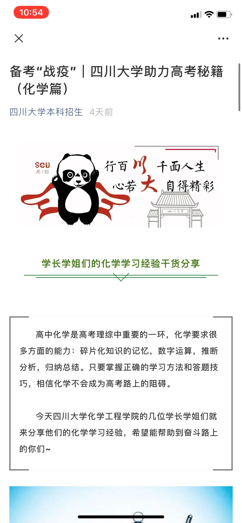 不要为现有的任何成绩骄傲自满,不要为眼前的任何挫折气馁,只需端正心态,埋头苦干,只为迎接最后的那一战。相信当“战疫”胜利之日,也是高三同学们“春风得意马蹄疾,一夜看尽长安花”之时。梦想成真的感觉真的很美妙,它值得你毫不犹豫地继续下去——祝愿高三同学们2020高考必胜!我们在四川大学等你!
