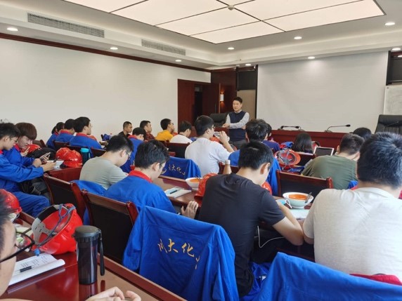 郭孝东副院长到达现场后,首先详细了解了同学们的生活和学习情况,对生产实习的认知和感受。随后,郭老师跟同学们强调了生产实习的重要性,希望同学们能珍惜实习机会,将课堂所学理论知识和现场设备、工艺等环节有机结合,多向有经验的工程师交流学习,提升自己发现问题、解决问题的工程实践能力。其次,郭老师提出化工行业是国民经济不可或缺的重要组成部分,鼓励大家继续深造,努力学好专业知识。最后郭老师提醒大家在实习现场一定要注意安全,一切行动听指挥,牢记学校和企业的安全培训,戴好安全帽,注意脚下。郭老师还同鼎盛锂业综合部田部长就化工专业本科生实习进行了深入交流,感谢公司为同学们提供宝贵的实习机会和细心指导,就每天的实习安排进行了充分讨论。