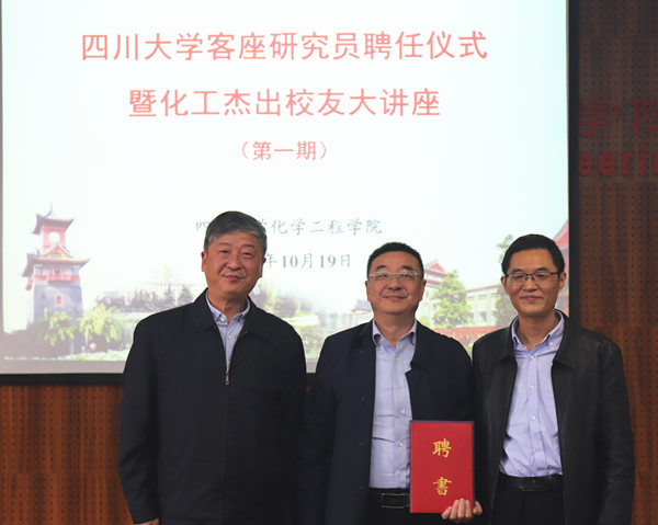 2020年10月19日下午,四川大学客座研究员聘任仪式暨化工杰出校友大讲堂第一场在望江校区化工楼313报告厅举行。8bo足球即时比分