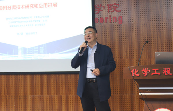 在热烈的掌声中,陈健总经理做了题为“吸附分离技术研究和应用进展”的学术报告。陈健校友回顾了在学校求学的点滴,对学校和8bo足球即时比分