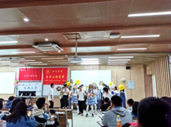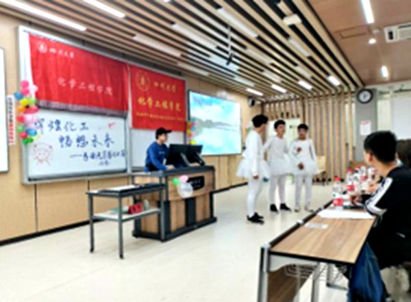 “绿色化工与生物医药”,“动力装备与安全”和“互联化工”三个专业共计15个班级。初赛的展示共分为两个部分:采用PPT或视频阐述“辉煌介绍”和班级表演。本次活动中最具代表的节目有:绿药304班的同学编排了一部有关化工的白天鹅情景剧,从童话的视角,以生动有趣的方式演绎表达出作为化工人的自豪感和以及对化工的热爱。绿药307班的同学朗诵了一首他们自己填词的诗歌—《致化工》,读出了他们对化工深沉的爱。302班同学改编大家熟悉的童年歌曲《猪猪侠》,融入化工和生活的元素,唱出了他们对化工的理解和对化工的热爱,手持可爱的气球,配以有趣的舞蹈,让会场笑声和掌声经久不歇……