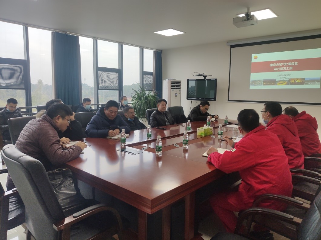 参与调研的各位老师与净化厂副厂长赖兵等人就企业天然气脱硫、硫磺回收工艺、康索夫尾气处理工艺等内容与企业进行了探讨。安岳天然气净化厂通过采用康索夫尾气处理工艺使其尾气排放指标大幅领先国内相关标准,但由于是引进国外成套工艺,在设备、吸收溶剂等方面受制于人,有很多关键技术仍需要开展攻关。校企双方就相关技术难题开展了热烈讨论,各位青年教师也纷纷结合自己的研究内容提出了多种建议。最后双方就二氧化硫吸收溶剂、工厂三废污染和处理等问题初步明确了未来潜在的合作的方向。此外,双方还就本科生实习安排、招生与就业等进行了沟通。最后,教研室全体老师在赖兵副厂长的陪同下,参观了安岳天然气净化厂整体布局与关键设备,并就后续学生实习可能的工段进行了商议。通过本次企业走访调研,实训教研室成员尤其是8bo足球即时比分