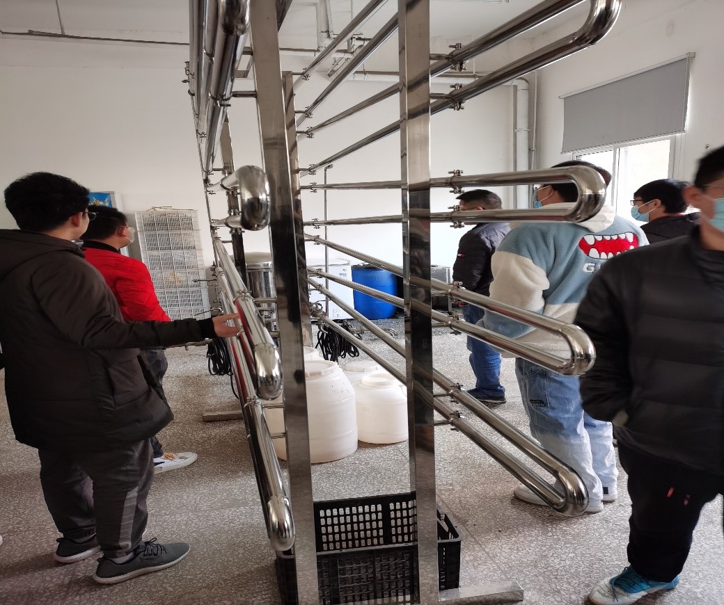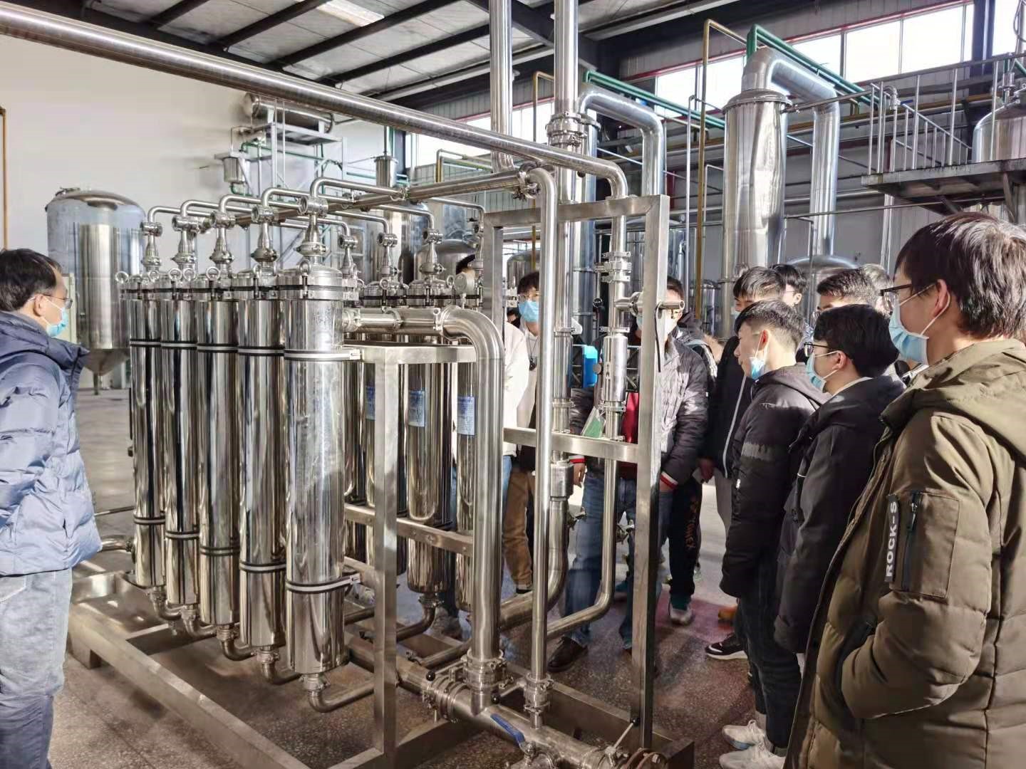 接下里的几天实习,同学们分为两组,主要围绕着提取车间和安装车间进行参观和学习。企业工程师为同学们细致讲解了提取车间每一个设备的运转方式和料液的进出情况。期间,同学们积极提问,企业工程师耐心回答同学们的问题,讨论了设备的安装过程和运作方式,将课本知识与设备的实际运作结合起来,帮助同学们很好地理解了设备的实操。