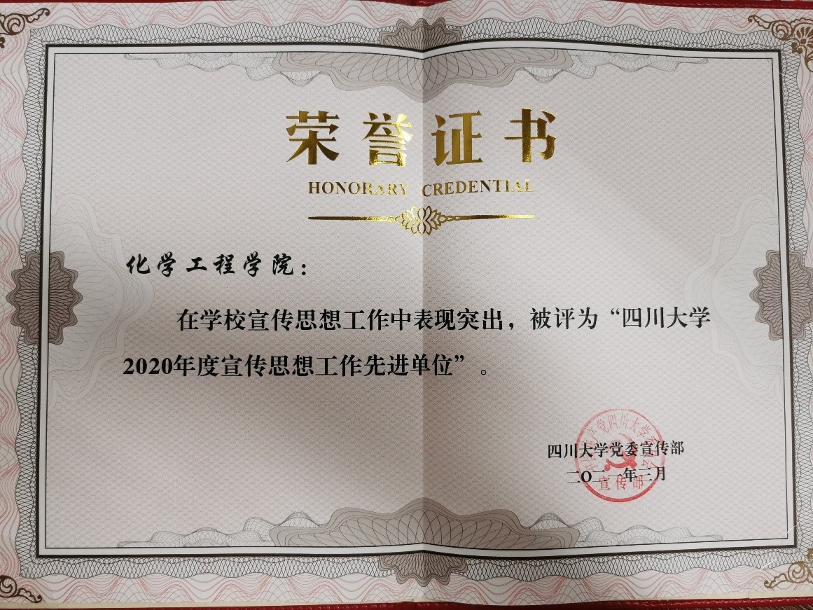 荣获2020年度“四川大学宣传思想工作先进单位”。