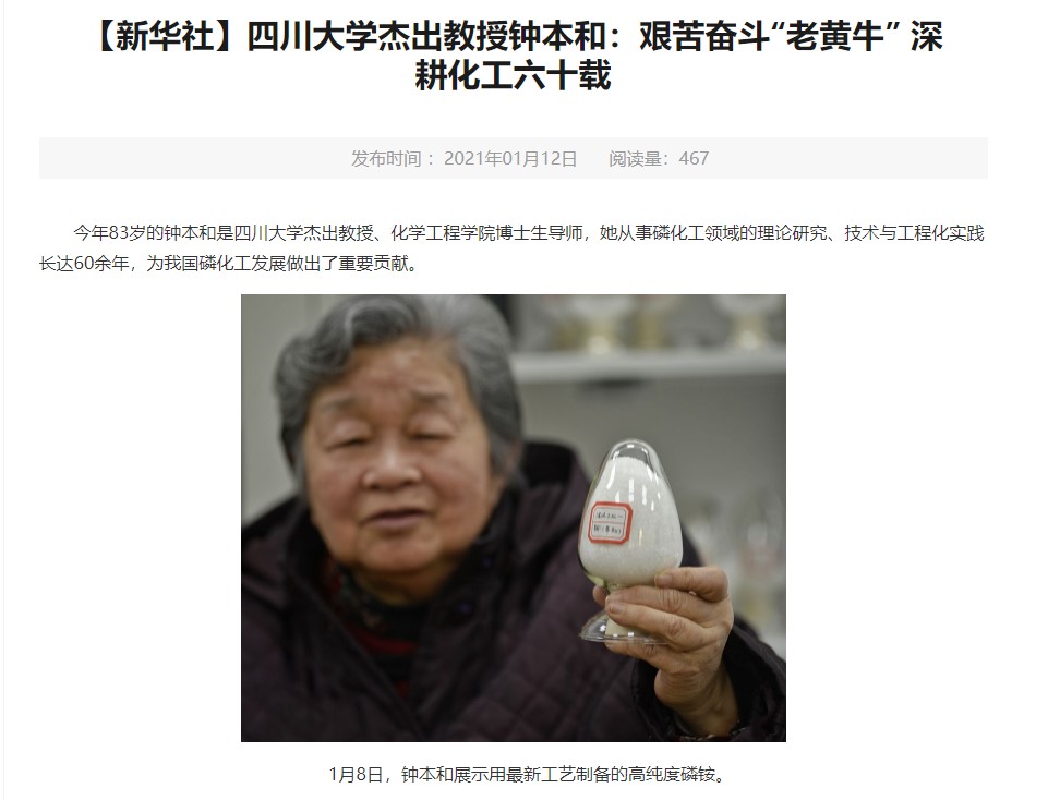 杰出教授钟本和先生艰苦奋斗“老黄牛”精神,学校官方网站和专题专栏采用8bo足球即时比分