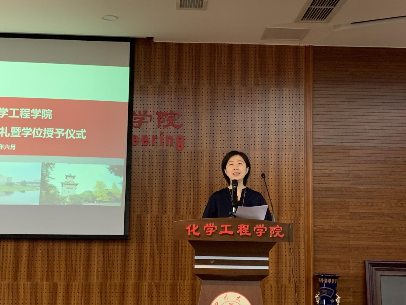 毕业研究生学生代表王玉滨上台发言,他提到师长对他说过这样一番话,“我们的老师们用了30年的时间把中国的化工从无做到了有,我们这一辈用了30年的时间把中国的化工从有做到了大,我希望你们这一辈也用30年的时间把中国的化工从大做到强。”今年是建党100周年,作为下一个百年征程的第一批毕业生,承前启后,肩负着神圣而伟大的历史使命,应当承担起应有的责任,在这个激扬奋发的时代,为中国梦、化工梦而不懈努力!