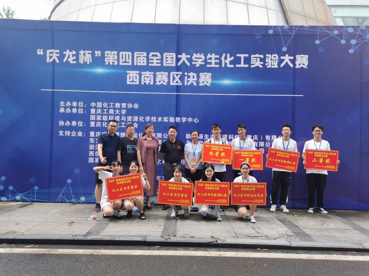 )的参赛团队一起,代表西南赛区参加于2021年8月11日至14日在南京工业大学举办的全国总决赛。另外两支队伍分别获得了西南赛区一等奖、二等奖,此外还获得化工原理学霸奖3项、化工原理实验团队奖2项及化工原理仿真单项奖1项。