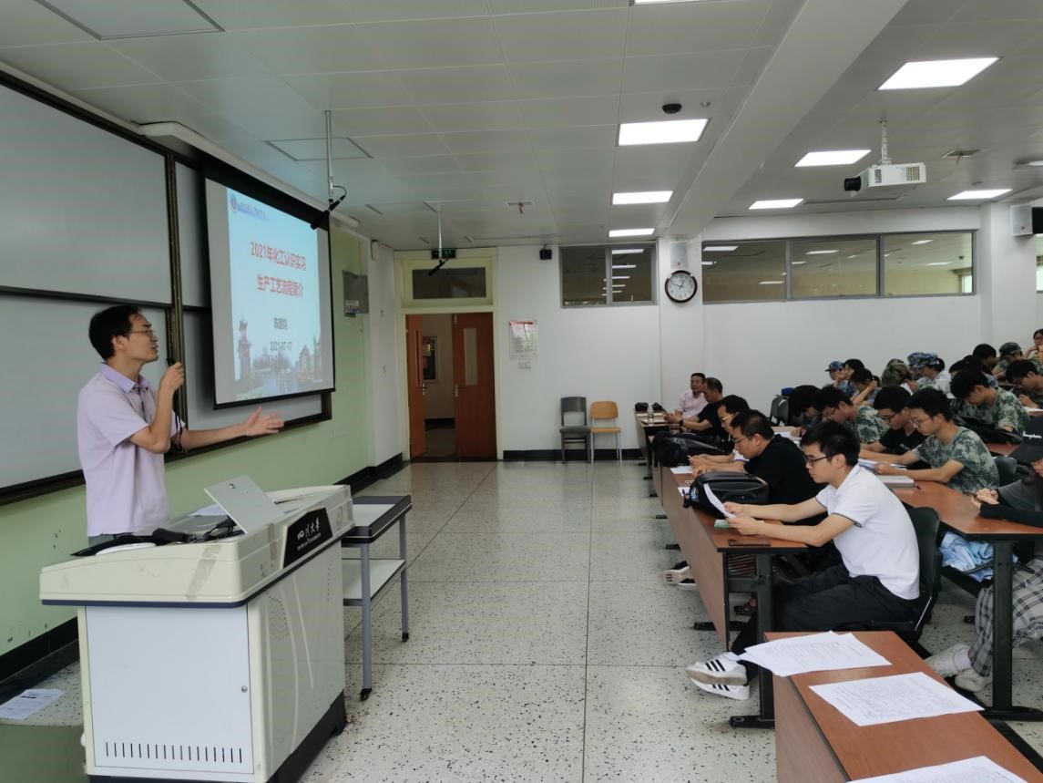 会上,袁绍军教授就实习期间的工作安排、任务要求、安全事项、疫情防控要求向同学们做了强调,指出希望同学们能够珍惜实习机会,在生产实践中努力提升自己,也要求同学们注意自身安全,加强个人防疫。吴振国老师向大家强调了化工生产实习课程的重要性,强调了同学们在实习过程中容易疏忽的注意事项,对实习路途、装置现场、住宿等环节进行了重点教育。陈建均老师就三个实习单位的主要流程工艺进行了讲解,指出希望同学们将生产实际结合理论课程进行理解。