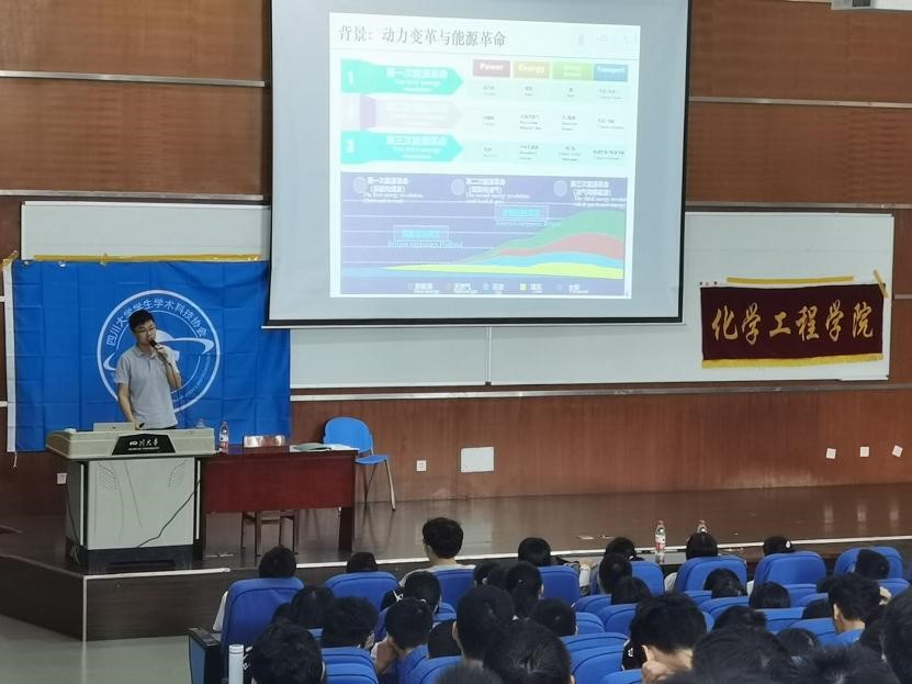 讲座伊始,何欣教授做了简单的自我介绍,通过课题组的研究概况引导同学们用理工思维进行思考化工并激发大家对科研的兴趣和热情。然后何教授重点讲述了课题组目前的研究方向:电池管理系统。他表示计划将其应用于电动飞行器的研究和电动飞机的研发。最后,还向同学们展示了他目前的主要学术成果——原位无损表征。该成果对新型电池结构的设计起到了启发性的作用,有助于后续新能源电池的研究。讲座中教授态度亲和、幽默风趣,现场气氛和谐。同学们对于何教授的主讲内容“动力变革和能源革命中的产业结构调整和发展机遇”纷纷表示受益匪浅。