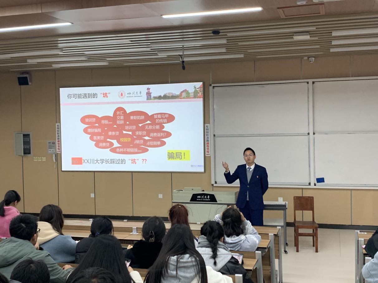 为帮助同学们增强反诈骗意识、树立反诈骗观念,养成正确的消费观和价值观,由四川大学学工部组织开展的“大学生防诈骗教育及金融知识”讲座于2021年12月10日下午13:50和16:45分别在江安校区综合楼C座C403和C106教室顺利举行。本次讲座主讲人为我校2012届校友、交通银行王红明行长,8bo足球即时比分