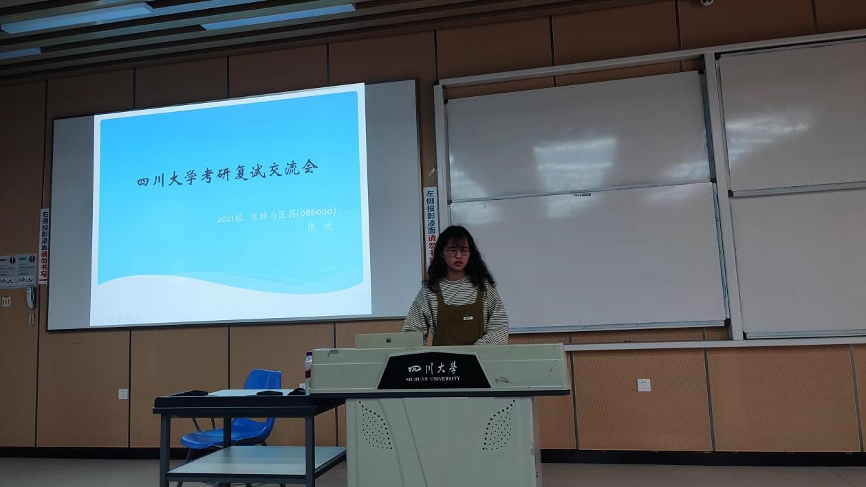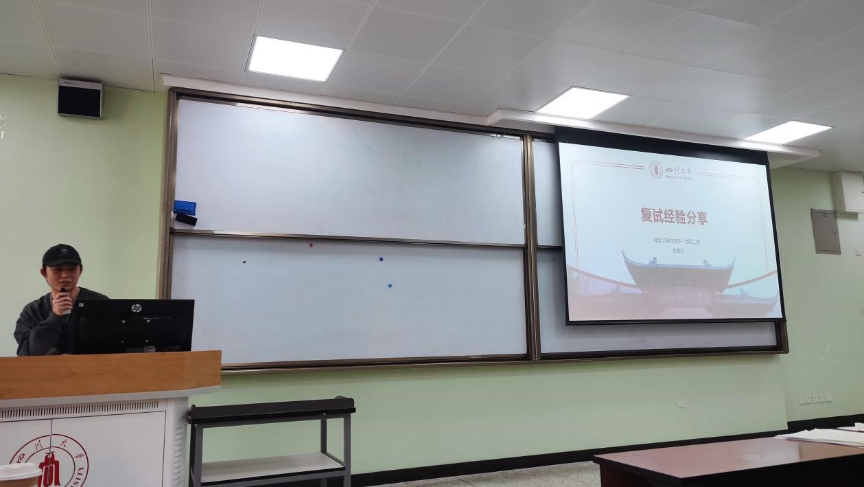 接下来,2021级制药工程专业硕士生余德洪、材料与化工专业硕士生杜宏志为同学们分享了自己在准备考研复试过程中的心得体会与经验,包括复试流程的介绍、专业课的复习、英语的准备、简历制作、个人陈述的PPT完善等,对考研学子的复试准备提供了细致指导。随后2021级生物与医药专业硕士生张欢与能源动力专业硕士生朱晨也为同学们带来了精彩的分享,除了复试流程的讲解外,他们结合自身经历为同学们讲授了许多复试小技巧,鼓励同学们认真准备的同时放松心态,预祝同学们取得优异成绩。