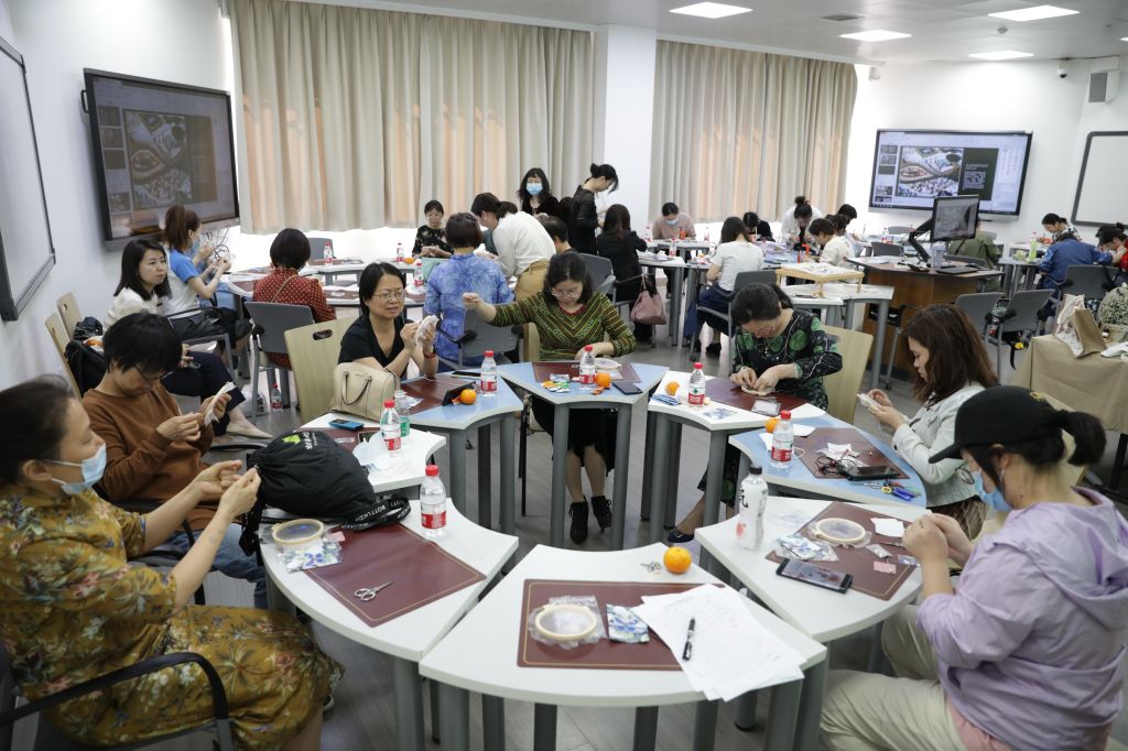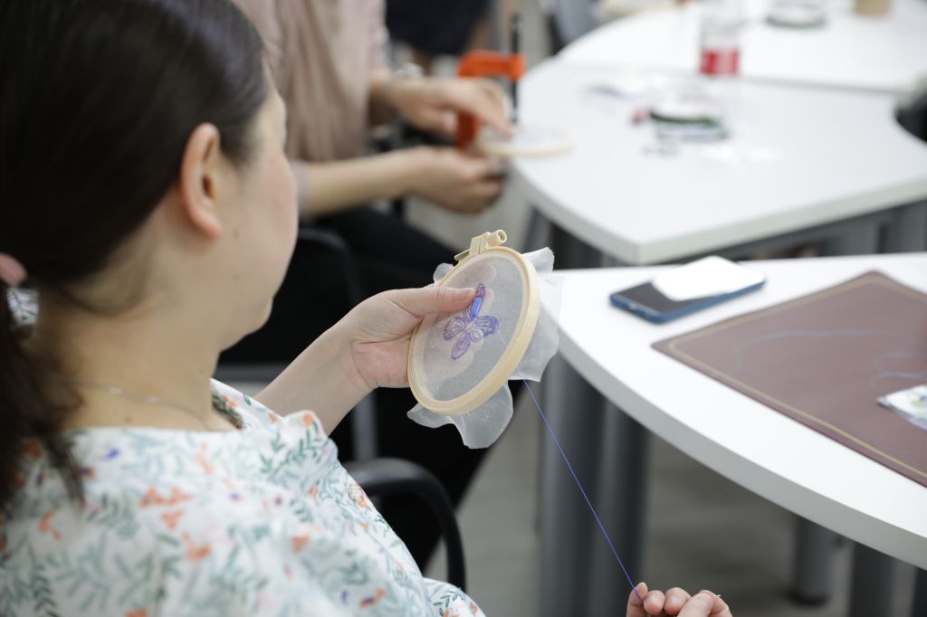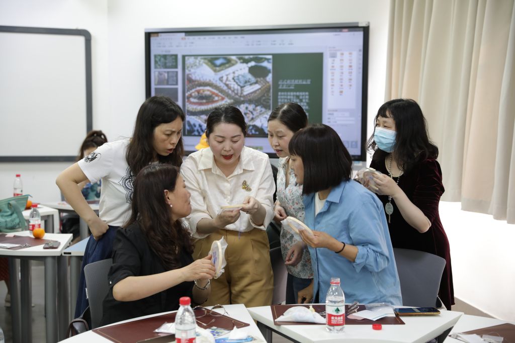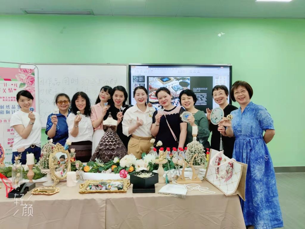 活动得到了四川大学工会和吾同高定文化传播有限公司的大力支持,大家为活动的顺利开展精心布置场地,营造了温馨、高雅的氛围,让参与的女职工倍感亲切和愉悦。来自吾同高定文化传播有限公司的三位老师带领女职工们了解法式刺绣的历史和发展过程,学习品鉴法式刺绣作品,并现场制作精美的胸针。大家兴趣盎然、跃跃欲试,在老师们的指导下纷纷制作出了独一无二的作品。