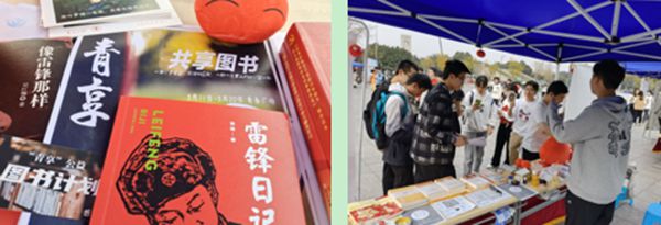 “青鸟”志愿者服务队组织志愿者们,在江安校区青春广场开展了“青享”书籍互赠活动。通过分享雷锋传记、重述雷锋故事、传播雷锋精神,搭建公益书籍共享平台,共享学习资料和优秀藏书,推广落实书香校园、全面阅读的读书口号。