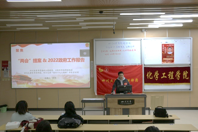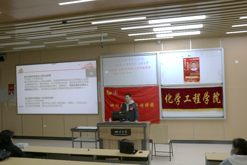 团委学生会宣传部于2022年3月26日晚上19:00在四川大学江安校区综合楼C座203教室举办了“不忘初心,紧跟党走”青年讲师团主题宣讲活动,并通过腾讯会议线上同步转播。此次宣讲活动邀请到了四川大学青年讲师团成员罗杰博士,给大家带来了主题为“把握历史规律,认识发展逻辑”的精彩分享。