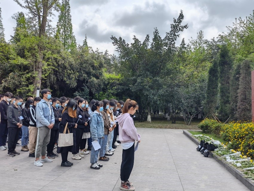 “习近平新时代中国特色社会主义思想”研究会(以下简称“习新会”)实践中心部门的组织下,雏鹰党支部书记雷金凤和本科18级党支部书记李忆雯带领党支部的党员同学和习新会部分成员在四川大学江安校区明远湖先烈纪念碑集合,缅怀先烈、传承英雄遗志,表达对革命先辈们的深切追思。