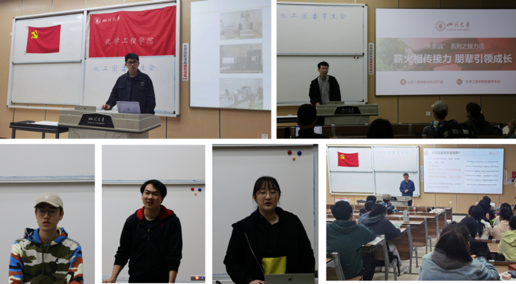 团委主办,邀请了覆盖本硕博不同年级的优秀党员和团员共计6名学生,于2022年4月15日晚上19:00,在江安校区综C507教室,为2021级近50名“化工之星”学生进行交流分享,形成“朋辈引领解疑惑,党团齐心助学风”的良好氛围。