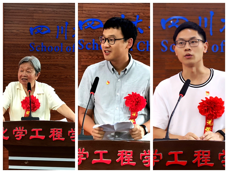做出新的贡献;优秀党务工作者代表、青年教师谭帅同志从坚定理想信念、牢记立德树人使命和提升业务水平与科研能力等方面表示要以“四有”好教师为标准,不忘教育初心,坚守教师使命;先进党支部代表、研究生过程装备与安全科学党支部书记邓松同志结合“全国百个研究生样板党支部”的创建过程,分享了支部“有政治高度、有凝聚力度、有服务精度、有育人深度”的“四有制度+”建设理念和实践,并表示会努力让支部成为滋养党员成长成才的沃土,培养更多优秀党员。