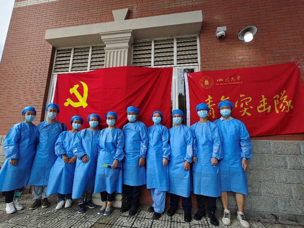 川大党员作用发挥不仅仅在校园里。在校外,也有他们奋战在志愿服务一线的身影。很多老师主动承担起小区服务志愿者的职责,出入登记、秩序维护、扫码检测,即使力量微小也要献出自己的力量。