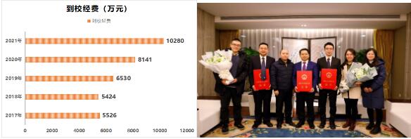 教师捐赠超过140万元,友好企业捐赠超过1000万,设立了奖学金12项。