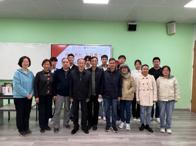 党委副书记姜利寒老师、校院两级关工委李川娜老师、傅师申老师、李维俊老师、刘蓉生老师、刘彦允老师、岳齐琼老师,辅导员李珍珍老师和付率老师,以及两个班8位班干部同学参加。