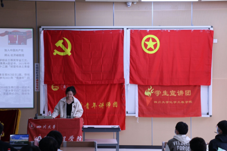 第二十七届团校暨第九期入党积极分子培训班“求是学堂”第二次行课“榜样说”及红色观影活动,于2022年11月19日(星期六)下午两点在四川大学江安校区综合楼C座503教室(主会场)、504教室(分会场)以及线上腾讯会议和群课堂方式顺利进行。“榜样说”的主讲人有全国向善向上好青年罗杰、2021年度中国大学生自强之星王珊珊、百川宣讲团宣讲员张益凡。