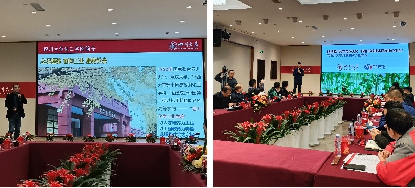 泸天化集团公司傅利才常务副总讲话指出,感谢四川大学一直以来对泸天化发展提供大力支持。他介绍了泸天化集团公司情况,祝贺项目签约成功,希望科研合作扎实推进,取得好成绩。