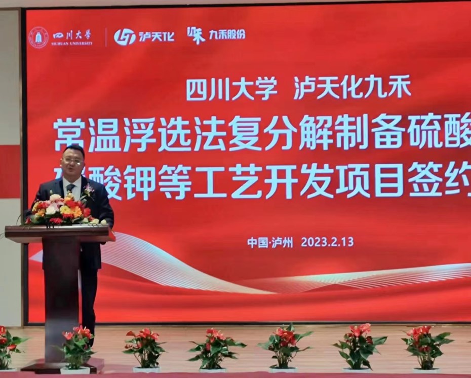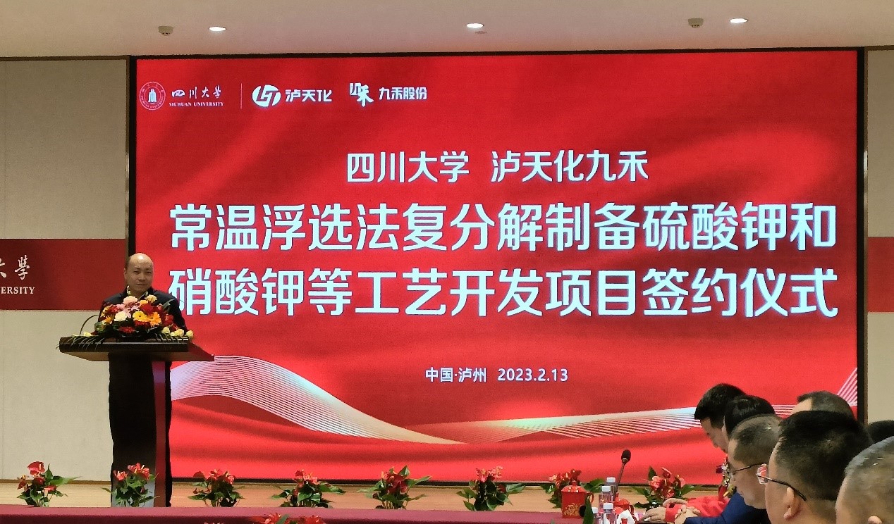 泸天化股份公司赵永清总经理讲话,高度肯定了本次九禾公司和四川大学的合作,符合目前泸天化集团“三新”发展战略,要实现互利共赢,将科研成果转化为中国农民喜欢的产品。他希望通过本次合作共同建立创新人才培养机制,实现创新成果转化,不断推出科技创新产品。