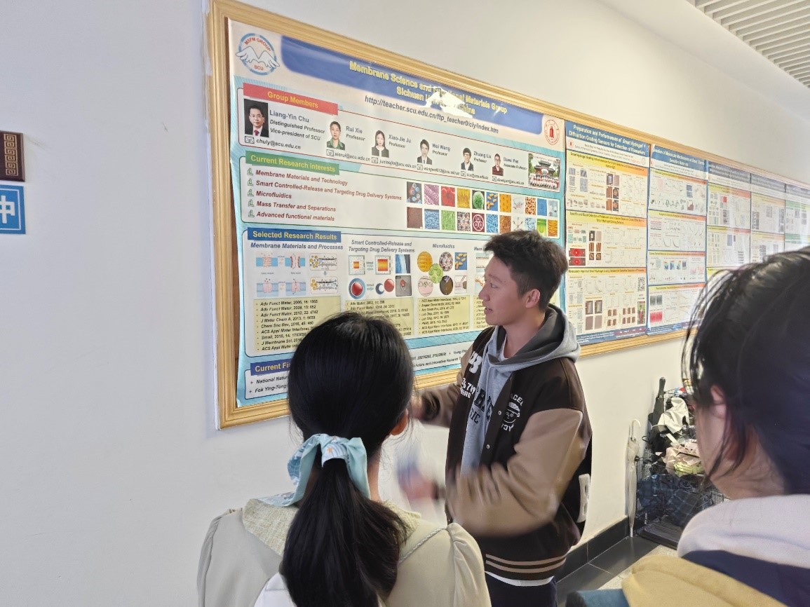 上午8:30,同学们便在四川大学江安校区的第一基础实验楼大门前集合,此次同学们被分为了两组分别进行参观,由学长带着同学们去往不同的实验室再由实验室的老师们为大家一一讲解。大家分别参观了先进能源材料化工与器件工艺实验室、多孔材料与人工智能研究室、环境与能源功能材料课题组、先进材料工程化研究课题组、先进膜材料课题组、低碳技术与化学反应工程研究室。参观过程中,老师们带着大家逐一参观各种仪器并介绍功能,并鼓励同学们去亲自体验,去观察。同学们都十分认真地跟着老师一步步地深入了解各种新奇有趣的科研知识。