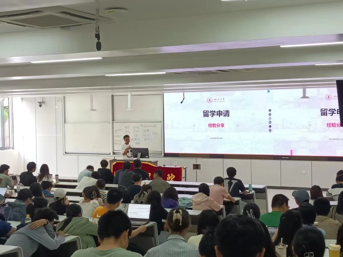 团委及“定盘星”辅导员工作室于2023年4月14日下午在江安校区综合楼C座107教室成功举办“升学大讲堂”之“本科生留学经验分享交流会”。本期“升学大讲堂”邀请嘉宾为党委副书记姜利寒、2019级鲍楚儿、2019级廖鑫柯、2019级蒋明媛;此外,2020级辅导员雷金凤老师以及全体2020级本科生参加本次活动。
