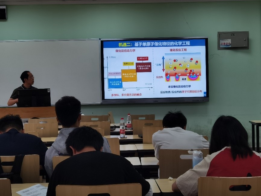 航天催化材料重点实验室杨小峰研究员为同学们作了《催化的魔力:从航天应用到单原子催化》的学术报告,从实验室强大的科研团队到该领域发展的众多机遇,为同学们描绘出一幅精彩的科研画卷。