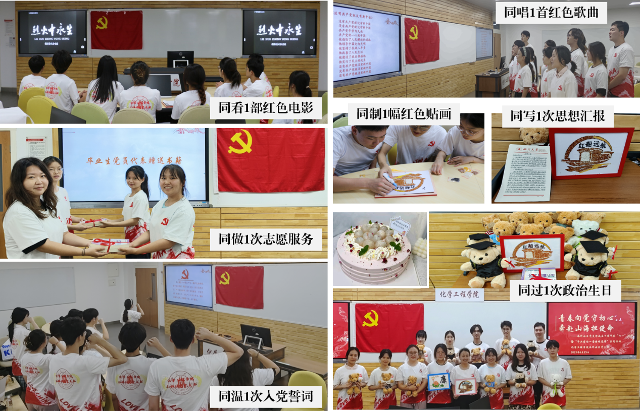6月25日晚上7点,本科社区党支部全体成员在活动现场,开展了红色“七个1”活动。同过1次政治生日,以支部成立10周年为时间节点,全体党员强化责任与担当,永葆党员本色;同唱1首红色歌曲,全体党员合唱《没有共产党就没有新中国》,用旋律唤起红色记忆,用歌词净化淳朴心灵;同看1部红色电影,全体党员观影《烈火中永生》,弘扬江姐精神,传承红色基因;同制1幅红色贴画,低年级党员用五谷杂粮粘贴出“红船”表达爱党之情,毕业生党员贴出“廉”字共扬廉洁风;同做1次志愿服务,毕业生党员向低年级学生党员捐赠旧书,回馈8bo足球即时比分