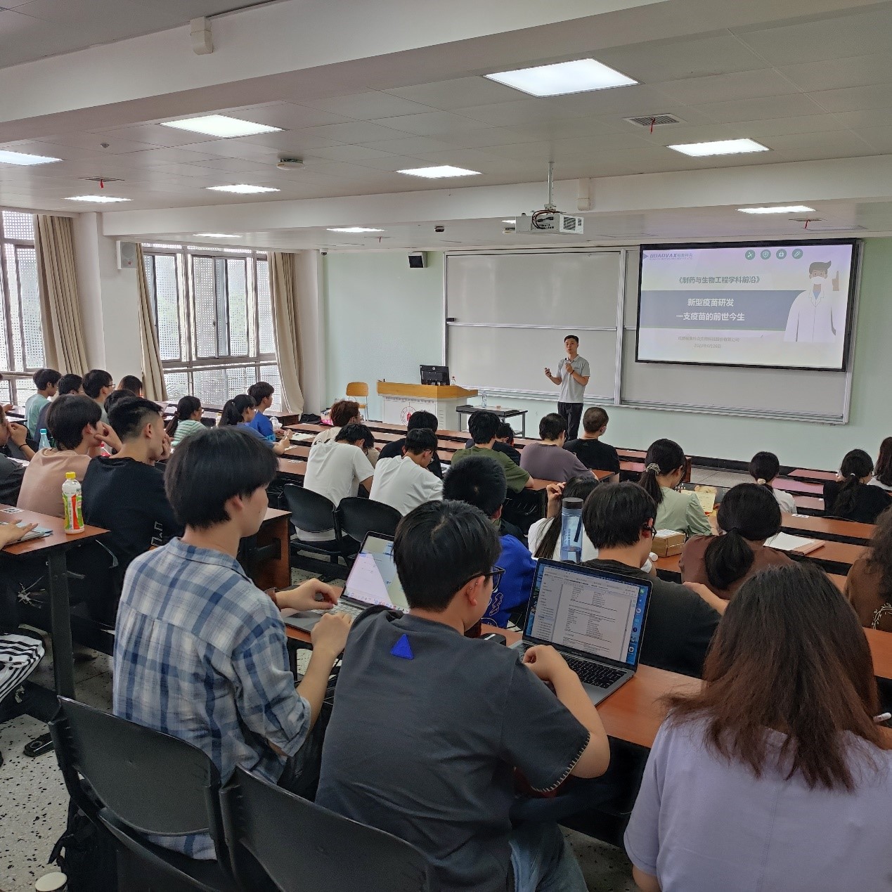 2023年6月26日下午13时,于四川大学江安校区一教B座303室,制药与生物工程系邀请到成都柏奥特克生物科技股份有限公司梁智杰董事长一行,与同学们分享了以“新型疫苗研发—一支疫苗的前世今生”为主题的讲座,并取得了良好的课堂反馈。