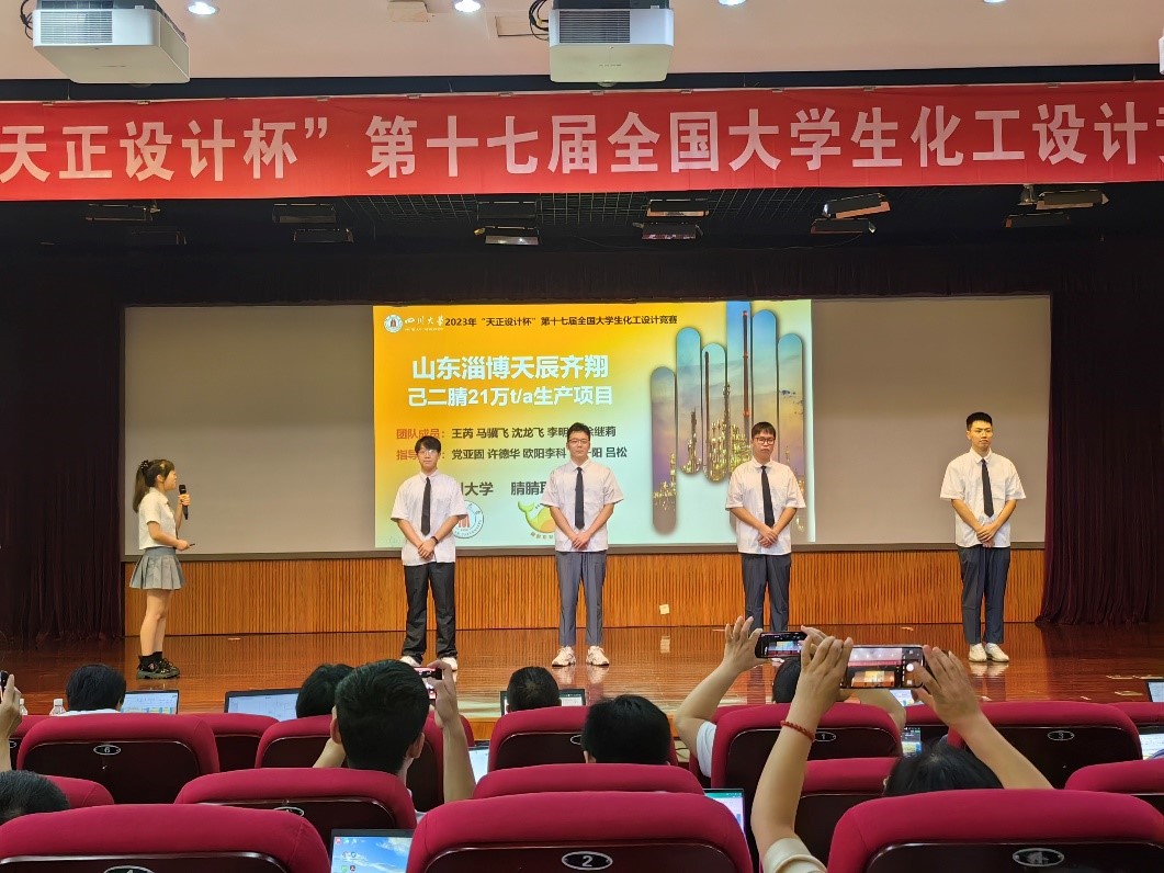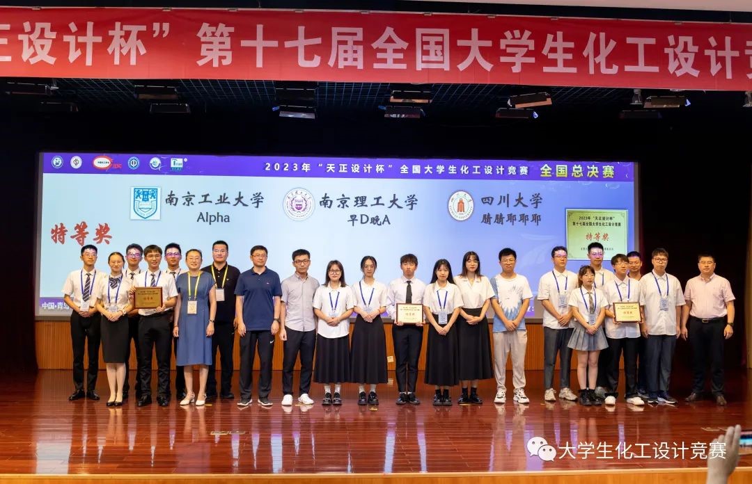 8月22日,2023年“天正设计杯”第十七届全国大学生化工设计竞赛全国总决赛落下帷幕,四川大学“腈腈耶耶耶”团队从3391支参赛队伍中脱颖而出,斩获全国总决赛特等奖。这是我校2012年以来连续12年获得全国特等奖的殊荣(其中2012,2016获得全国总决赛金奖第一名)。
