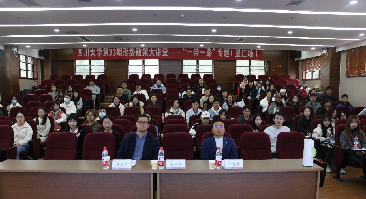 张超哲阐述了共建“一带一路”的历史渊源和理念愿景,总结了“一带一路”建设十年丰硕成果和实践成就,分析了高质量推进“一带一路”建设存在的风险和挑战。他指出,川大在服务国家“一带一路”建设中有基础、有优势、有特色。希望广大青年积极发挥作用,不只做“一带一路”的受益者,更要做积极参与者和实质贡献者。