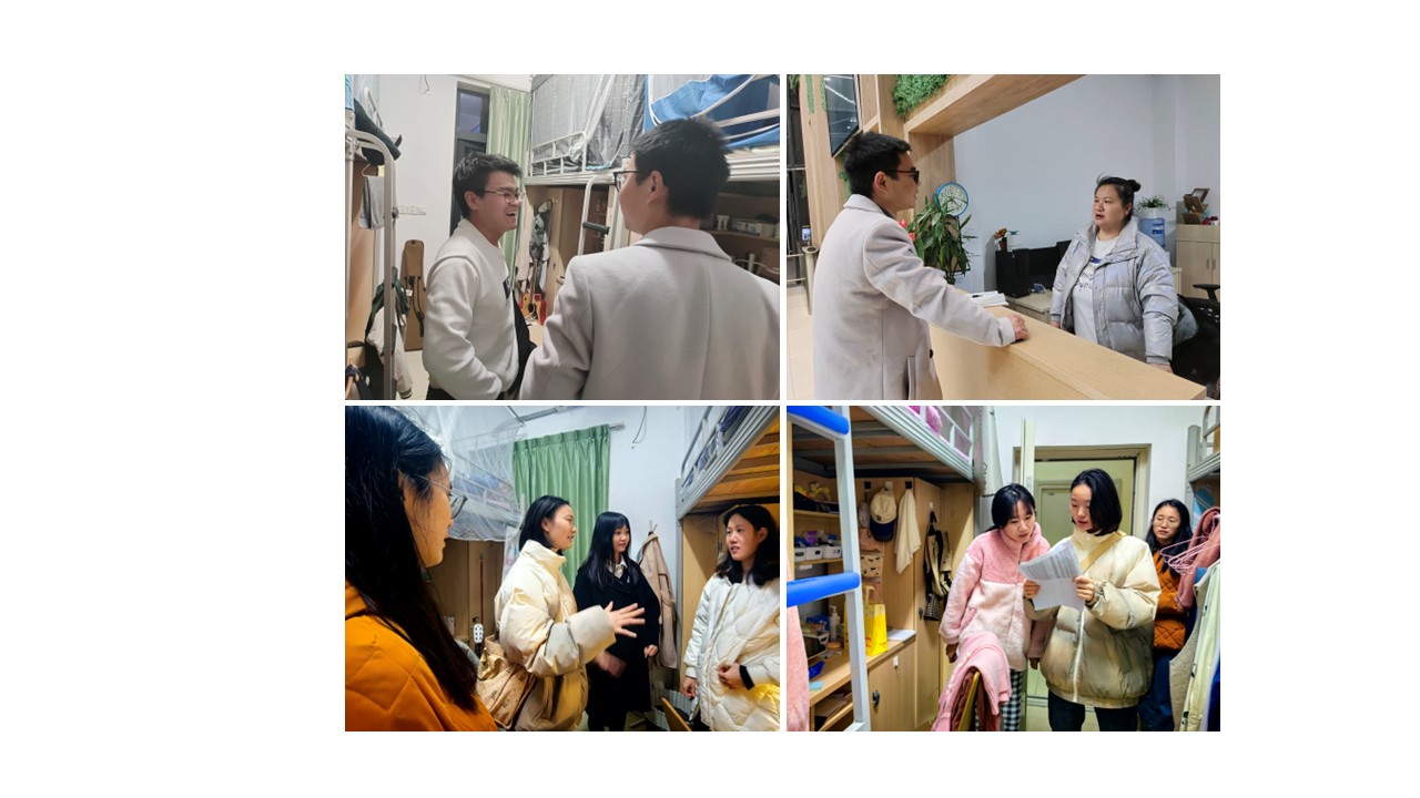 深入寝室,排查隐患。12月5日晚上,邓磊、杨秀英老师走进江安校区东园和西园学生宿舍,此次宿舍的重点是提醒同学们在宿舍一定要严格遵守宿舍管理规定,养成良好的科研生活习惯,避免夜晚外出。同时,也了解了学生在宿舍住宿情况,向同学们讲解了冬季在宿舍用电注意情况,不用使用违规电器,注意好寝室的卫生防护。此外,和负责8bo足球即时比分