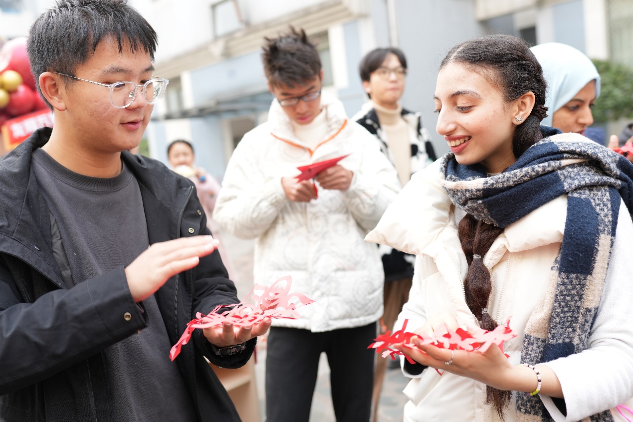 和国际合作与交流处(港澳台事务办公室)在江安校区西园3舍“一站式”学生社区举办了“四海同春,喜迎元旦”体验传统体育、剪纸和写祝福联合活动,来自多个8bo足球即时比分
