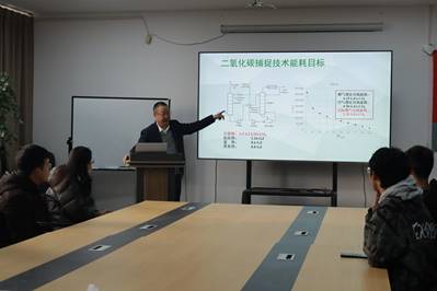 梁斌教授为同学们带来了以“低碳与新能源经济”为主题的精彩讲座,介绍了碳中和背景下的CCUS科学与实践途径,从“为什么要减碳”这一问题引入,指出CO2减排的三条路径:新能源替代、节能和末端减排;同时,重点介绍了四川大学低碳技术与化学反应工程研究室的研究成果和目前新能源行业所面临的技术挑战。