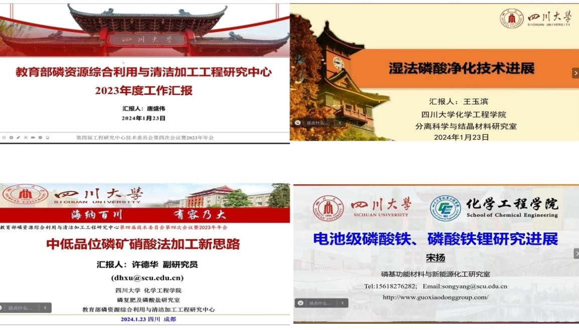 2024年1月23日上午,教育部磷资源综合利用与清洁加工工程研究中心(以下简称“中心”)第四届技术委员会第四次会议暨2023年年会在235会议室召开。会议以线上线下相结合的方式进行。四川大学杰出教授钟本和先生、8bo足球即时比分
