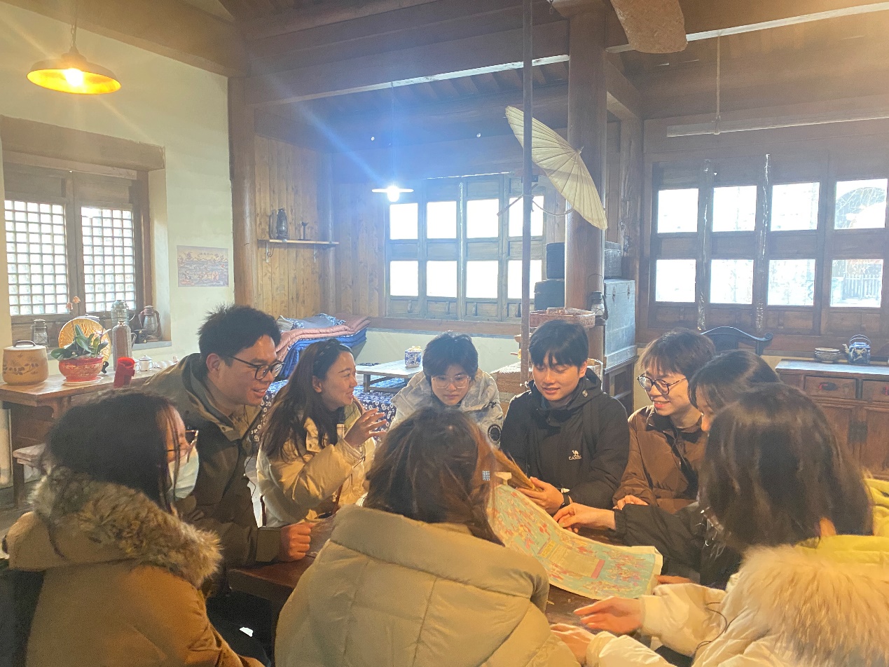 党的二十大报告指出,全面建设社会主义现代化国家,最艰巨最繁重的任务仍然在农村。1月25日,追随习近平总书记的步伐,实践团走进了章丘三涧溪村。在讲解员的带领下,各位老师和同学们一同参观了三涧溪村党群服务中心和乡村振兴馆,深入学习了三涧溪村从抓班子带队伍,到抓产业谋发展、抓环境优生态,再到抓人才强服务、抓文化促和谐,最后牢记嘱托、走好乡村振兴的发展历程和优秀经验,三涧溪村坚持以党建为统领的发展模式,是“乡村振兴齐鲁样板”的生动实践。在乡村振兴馆,老师和同学们认真观看展览,从千年古村,到如今党旗引领下时代振兴新篇章,切身体会到了在党的领导下,村民不断创业发展致富、不断给乡村注入发展活力所产生的巨大变化。在展厅中,一副“家”式基层治理架构图引起了大家的极大兴趣,老师和同学们边看边交流,三涧溪村从家文化抓起,建立“家”字型平安建设体系。