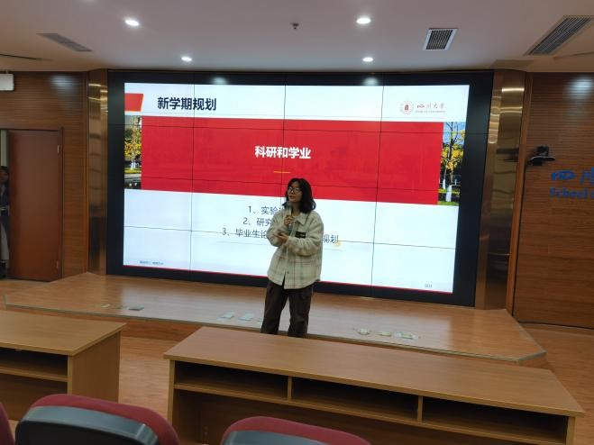 全体研究生参会。在这次会议上,杨秀英老师对毕业年级强调了电信诈骗、宿舍防盗等安全问题,并在实验进展安排、课程计划、毕业论文和求职规划上给出建议。邓磊老师随后对低年级同学补充了关于评奖评优的相关事宜,鼓励同学们一定要在新的学期有新的规划。