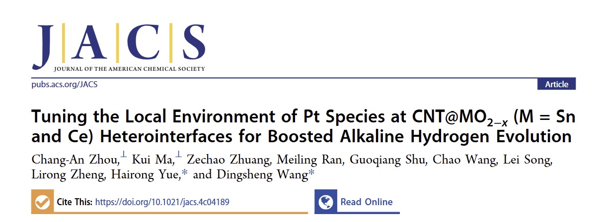 岳海荣教授团队与清华大学王定胜教授团队合作提出了一种高效复合结构(PtRu/CNT@MO2-x)碱性HER催化剂的设计策略。通过氧化物载体优化、Pt物种调控和修饰,改善催化剂导电性和调控异质界面局域环境,平衡了活性位点上H吸脱附、H2O吸附和解离行为,实现了碱性介质中的Volmer反应和H*脱附动力学同步加速,从而增强了Pt基催化剂的碱性HER性能。相关工作以“Tuning the Local Environment of Pt Species at CNT@MO2-x(M = Sn and Ce) Heterointerfaces for Boosted Alkaline Hydrogen Evolution”发表在国际顶级期刊《Journal of the American Chemical Society》。四川大学为论文第一单位,8bo足球即时比分