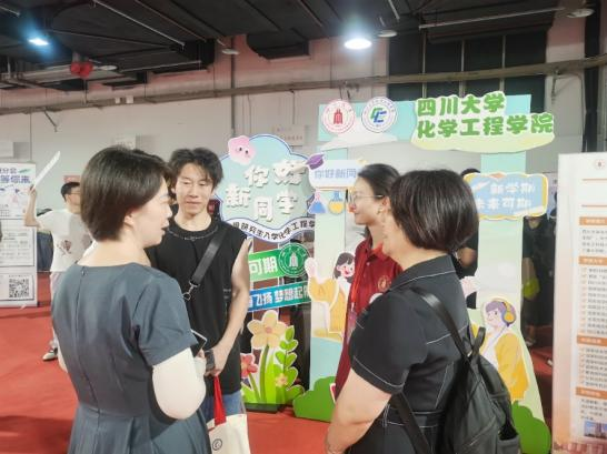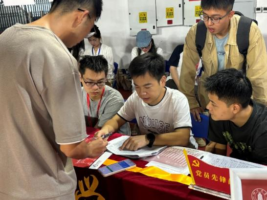 对新生的热烈欢迎和暖心关怀。此外,设置了党员先锋岗,党员学长夏有强、张涛先也在现场为新生提供关于学校概况、专业设置、校园生活等方面的咨询服务,发挥了党员的引领示范作用,弘扬志愿服务精神。