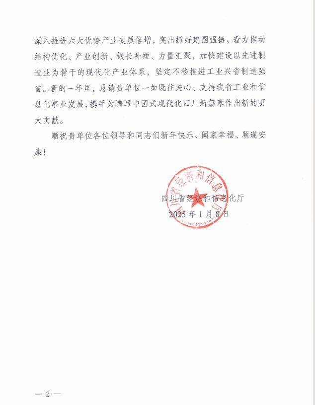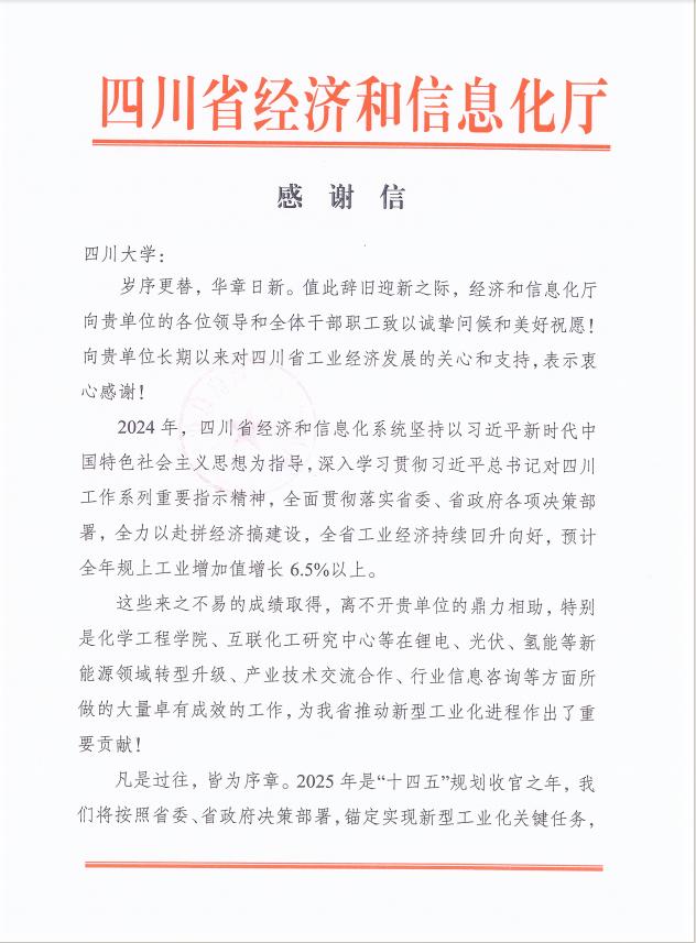 收到四川省经济和信息化厅发来的感谢信,感谢8bo足球即时比分