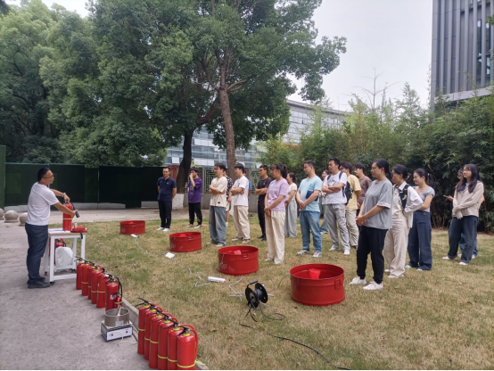 下午四点,在安全教育培训结束后,全体人员来到演练场地,在王袁隆的带领下进行了包括火灾初期扑救、灭火器实操使用以及楼宇疏散逃生演练的学习和实际操作。整个演练各环节安排紧凑,井然有序。