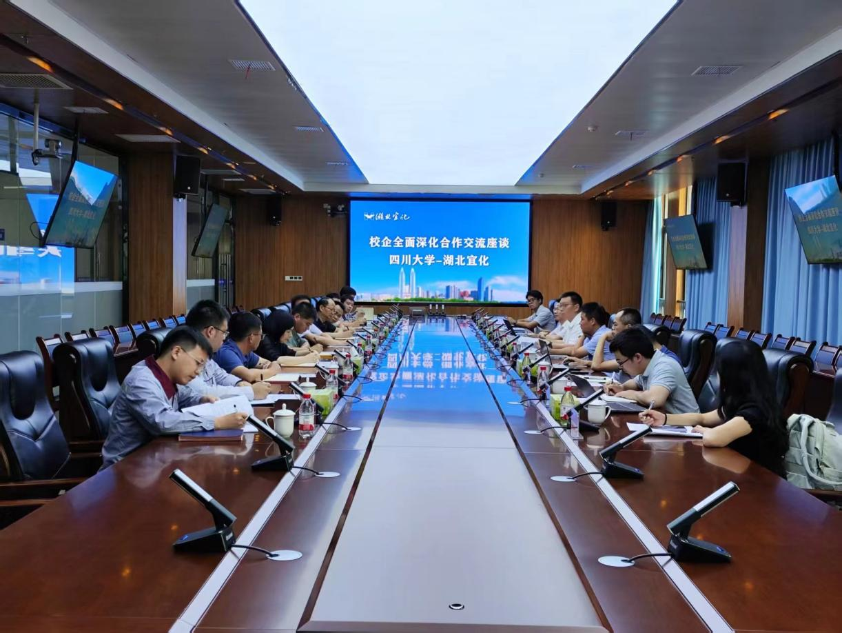 8日上午,代表团转赴湖北宜化集团田家河基地参观考察。在宜化集团副总经理李刚、副总经理刘晓和产业研究院院长黄志亮等陪同下,深入了解宜化在新材料、新能源领域的产业布局与研发实力。随后的座谈会上,双方回顾了合作历程以及成立“湖北宜化-四川大学化工新材料联合创新研究中心”后所取得的阶段性成果,并就进一步深化科研项目对接、优化人才共育机制、拓展平台合作深度等议题进行了富有成效的沟通。宜化集团董事长王大真特别强调要在现有基础上进一步加大与川大的合作深度和广度。双方一致认为,应充分发挥各自优势,拓展合作维度和深度,加速推动科技成果向现实生产力转化。