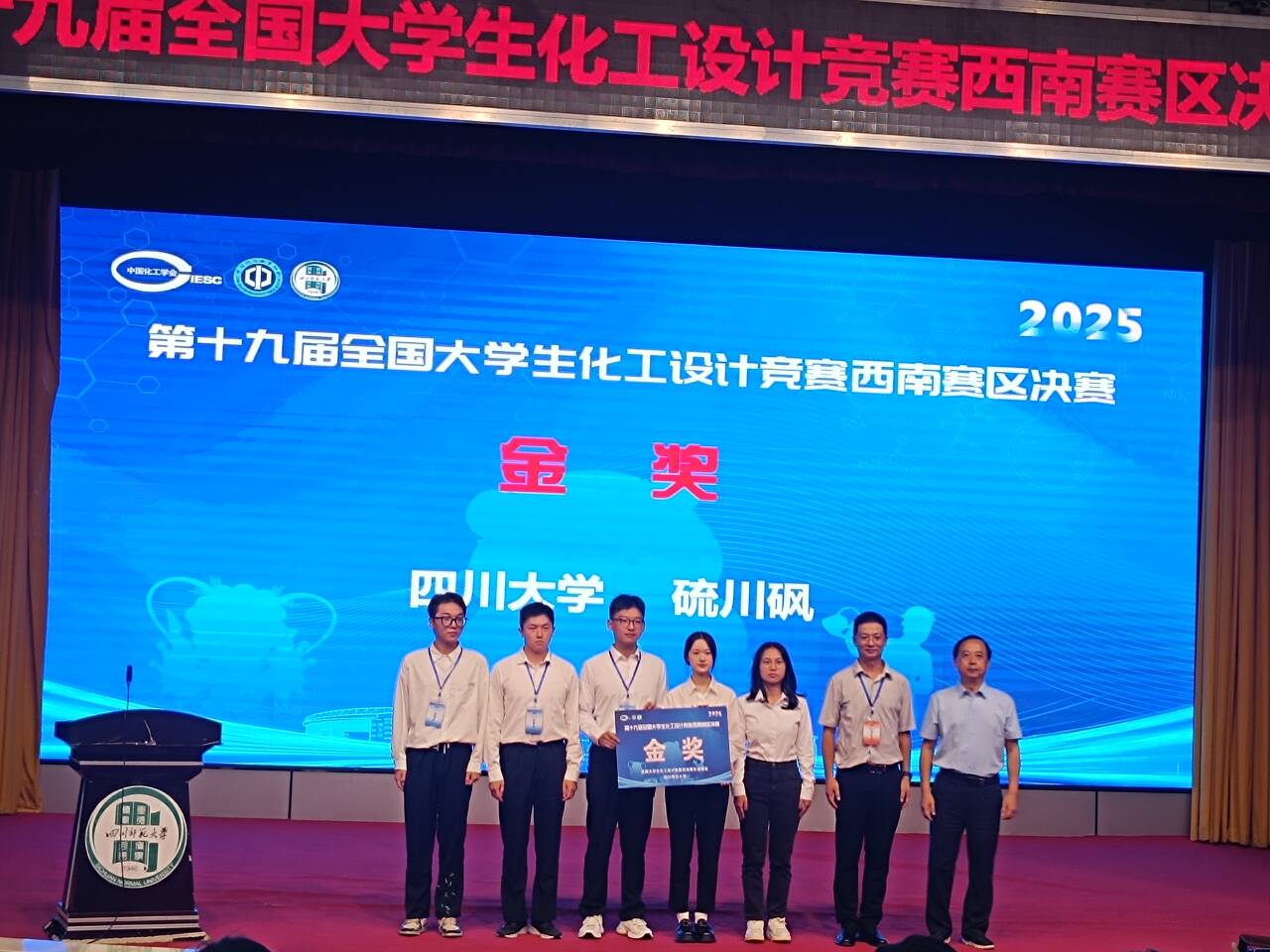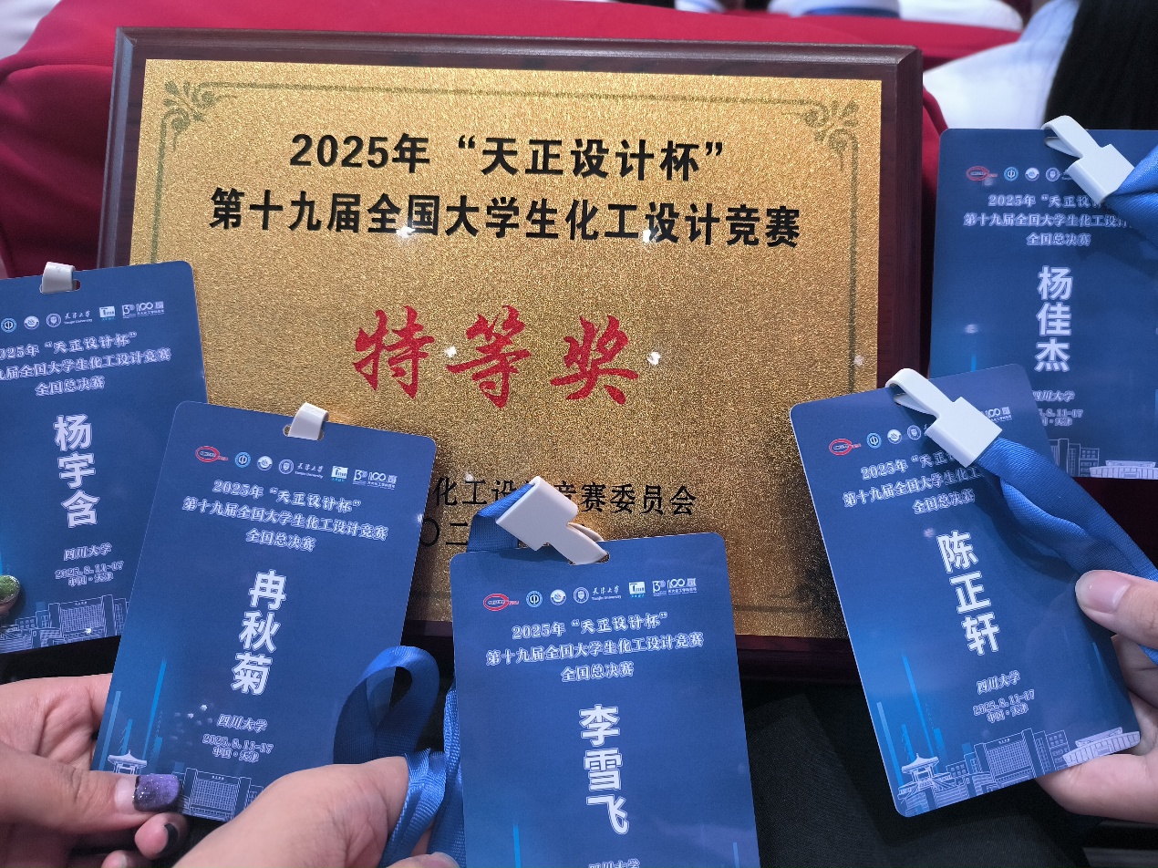 在8月17日结束的2025年“天正设计杯”第十九届全国大学生化工设计竞赛全国总决赛中,四川大学“硫川砜”团队从4439支参赛队伍中脱颖而出,斩获全国总决赛特等奖以及设计文档质量优秀奖。这是我校2012年以来连续14年获得全国特等奖的殊荣(其中2012,2016获得全国总决赛金奖第一名)。
