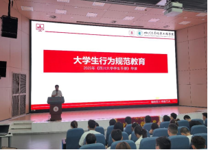在江安校区水上报告厅成功召开2025级新生首次年级大会暨军训动员大会。2025级新生辅导员李珍珍老师、付率老师和全体2025级新生参加此次活动。
