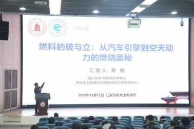 洪沅讲堂“燃料的‘破’与‘立’——从汽车引擎到空天动力的燃烧奥秘”主题讲座于12月12日下午在江安校区水上报告厅顺利举行。本次讲座由8bo足球即时比分-足球比分app