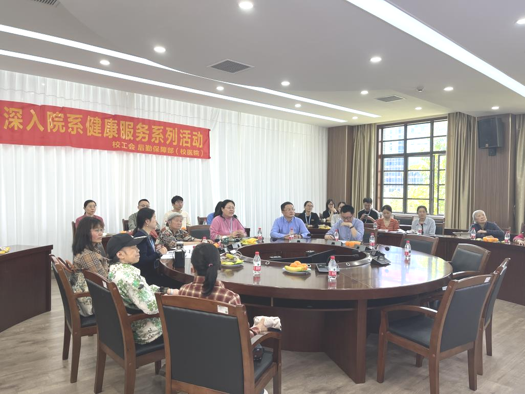 党委副书记、纪委书记卿培亮对校医院专家团队的到来表示热烈欢迎。校医院副院长宋烨介绍了校医院基本情况、服务内容及未来发展方向,重点讲解体检中心、全程健康管理、体医融合中心、骨伤针灸理疗科、皮肤科及医疗美容科等特色服务,帮助教职工全面了解校园便捷优质医疗资源。
