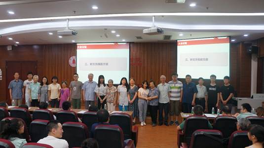 新发展党员名单。离退休党支部夏代宽、梁明征、傅运清、吴旨玉、党洁修、涂敏端、李自强、何良惠、罗莉华、张兴乾等 10位老党员代表为10位新党员代表佩戴党徽。